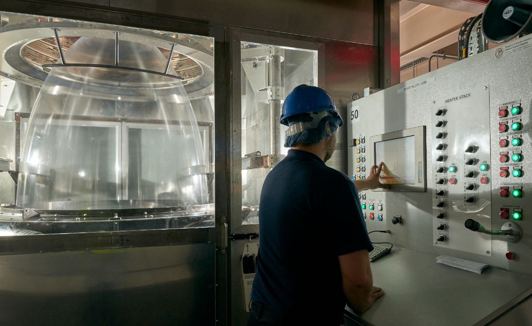 By the time the polymer reaches the base of the ‘bubble’, it has been transformed into a solid film. This is then rolled onto reels nine kilometres long, and delivered to CCL Secure in Australia, Mexico or the UK.